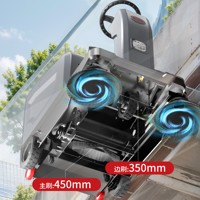 配備高效板式過濾器,能夠有效過濾空氣中的顆粒物,凈化5平方范圍內(nèi)的空氣,為清潔工作創(chuàng)造一個(gè)更加健康、清新的工作環(huán)境;采用40L聚乙烯材質(zhì)的清水箱,具有出色的耐腐蝕性和硬度,能夠承受長(zhǎng)時(shí)間的使用和各種清潔劑的侵蝕,確保了設(shè)備的持久耐用性;配備電動(dòng)升降功能的滾刷和邊刷,能夠輕松調(diào)整清掃區(qū)域,無論是地面還是邊角,都能靈活覆蓋,提升了清潔的靈活性和效率。